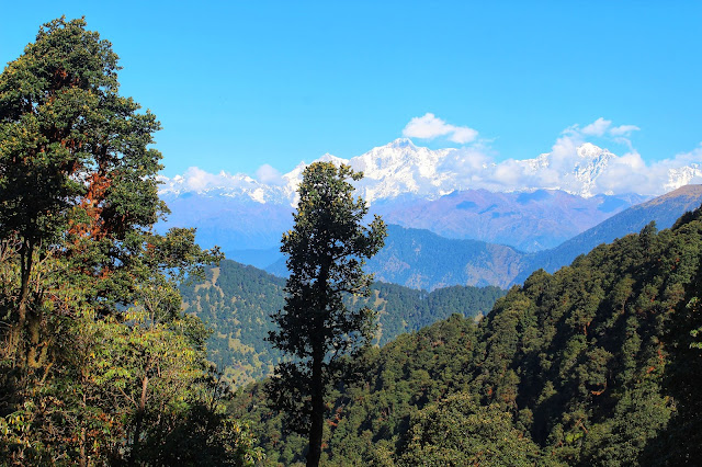 সারাটা পথ নন্দাদেবী রেঞ্জের নন্দাদেবী, নন্দাঘুন্টি, ত্রিশূল, চৌখাম্বা মতো শ্বেতশুভ্র বরফের চাদরে মোড়া চূড়াগুলো আমাদের চলার পথের সঙ্গী। নেওলা পাসের পাশর্বর্তী এলাকা তৃণভূমি অঞ্চল । উৎরাই পথে বেশ কিছুটা নামার পর ঘন অরণ্য ।